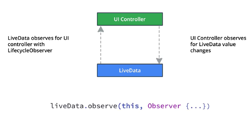 LiveData 是一种可观察的对象。Activity/fragment 可以观察 LiveData 数据,并在其改变时收到通知。这样一来,ViewModel 只需关心数据的计算,无需关心通知数据使用者等“杂活儿”;而 activity 也只需观察 ViewModel,在其改变时做出反应即可。